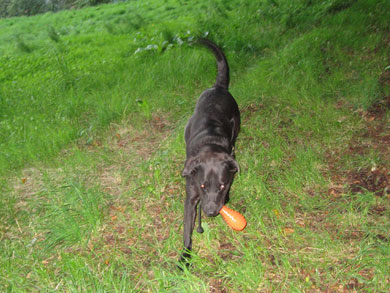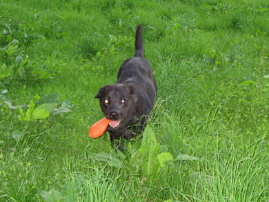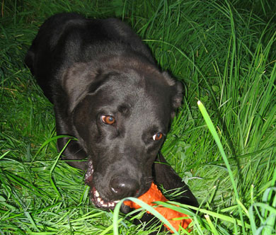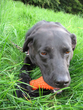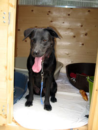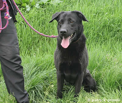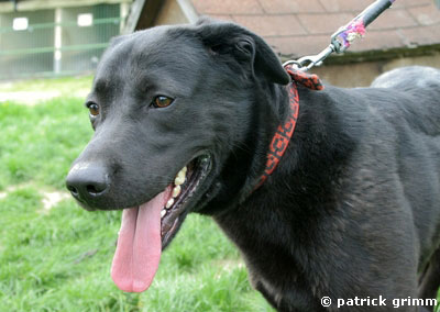auf ein neues Leben? Er ist ein schwarzer Labrador-Mix-Rüde.