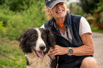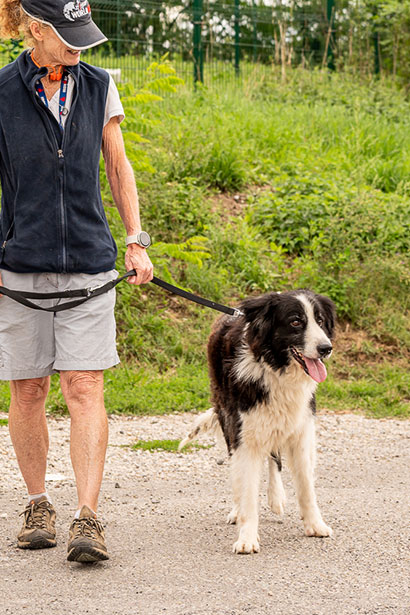 Beim Spazierengehen läuft er gut an der Leine, allerdings muss seine Muskulatur unbedingt aufgebaut werden.