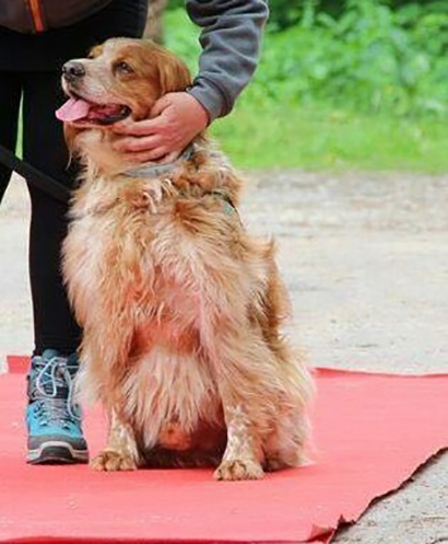 Er kann als Zweithund adoptiert werden, am Besten zu einer ruhigen Hündin in seinem Alter