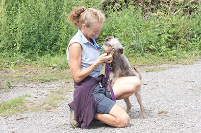 Als er sich ein bisschen beruhigt hat, habe ich ihn angeleint und wir sind zusammen in den Freilauf.