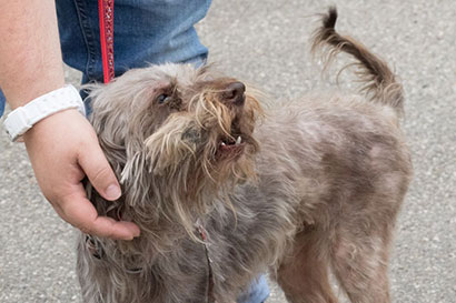 Sein Fell war so schlimm verfilzt, , dass er geschoren wurde!