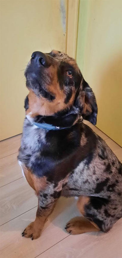 Der bildhübsche Border Collie- Dackel Mixrüde kam als Welpe in eine kinderreiche Familie. Leider hatte sich die Familie nach einer Weile getrennt und das Chaos um Charly war perfekt.