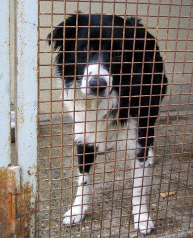im Zwinger und schaut soooo traurig drein,