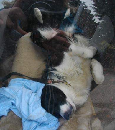 dann ins Auto der Tierheimleitung, und dort