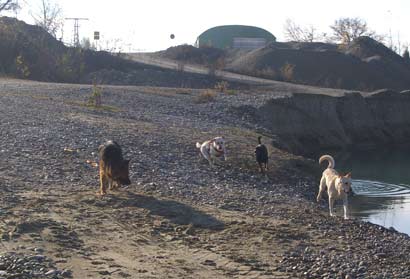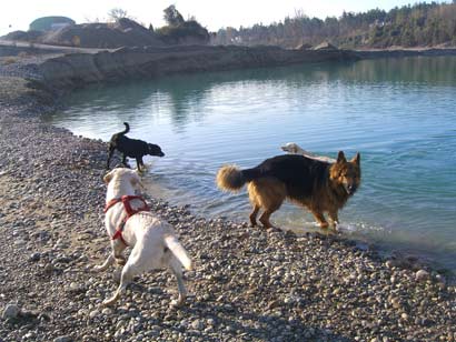 Bei diesem tollen Wetter haben die vier Colmaraner natürlich ein Bad genommen, wobei Cheyenne nur bis zum Bauch im Wasser war. |