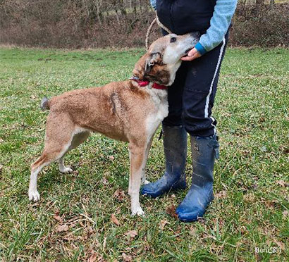Die liebenswürdige, 9-jährige Chipie wurde mit ihren Welpen aus schlechter Haltung geholt und ins Tierheim gebracht.