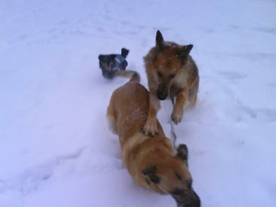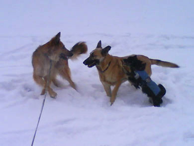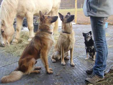 ohne Leine mit den anderen Hunden laufen.