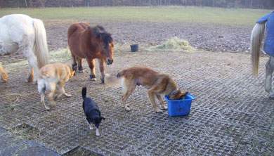 zu versuche ich den Katzen oder den Pferden