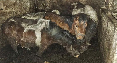 Sie waren eingepfercht in einem Stall mit vier, ebenfalls fast verhungerten Ponys -ö sie lebten unter unzumutbaren und erbärmlichen Bedingungen.