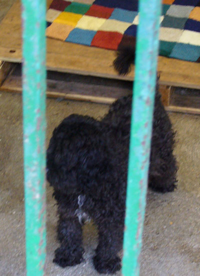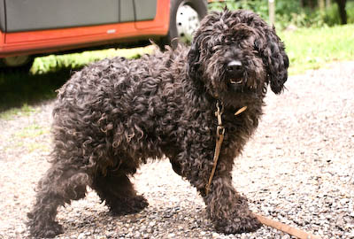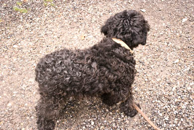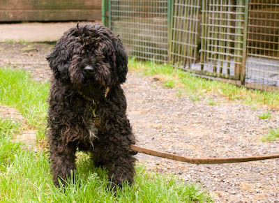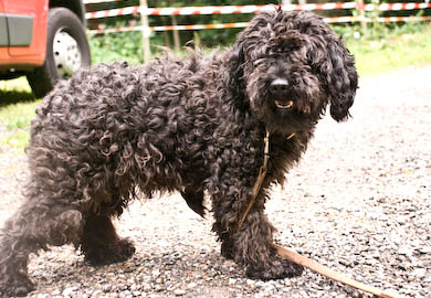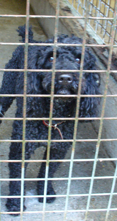 Chocolat, geboren am 1.5.2003, ein schwarzer Pudel-Mix-Rüde. Er kennt keine Leine und ist ein wenig ängstlich, taut aber schnell auf.