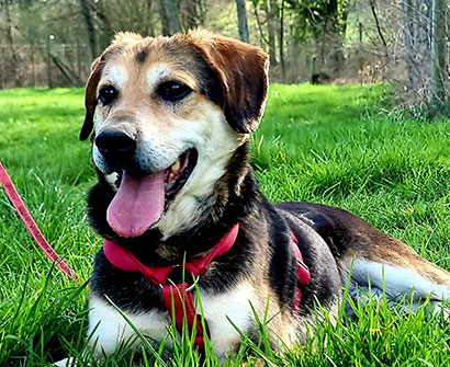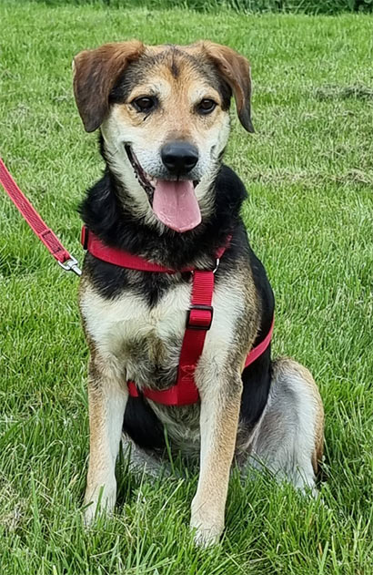 Wir wünschen dem Mischlingsrüden mitteleren Alters eine liebevolle Familie, die ihn unterstützt und es sich vorstellen kann, mit ihm, angeleint, auf Entdeckungstour zu gehen.