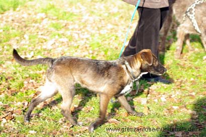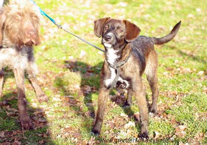 Die süße, relativ kleine Mischlingshündin wird auf ca. 8 Monate geschätzt und bekam den schönen Namen Clarisse.