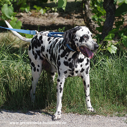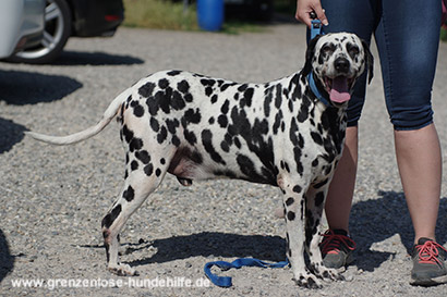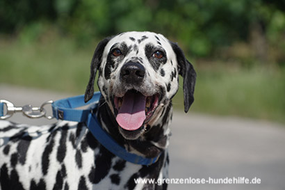 Seit er merkt, dass sich die Menschen liebevoll um ihn kümmern und er Gassi gehen darf, hat der Dalmatiner sogar ein kleines Strahlen oder vielleicht sogar ein kleines Lachen im Gesicht :)