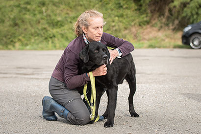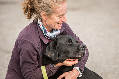 Dieser liebe Hundemann stand da, schaute seinem Freund nach und weinte. Um ihn etwas aufzumuntern, lief ich noch eine Extrarunde mit ihm. Als ich ihn dann später in seinen Zwinger brachte, kniete ich mich zu ihm und beknuddelte ihn.