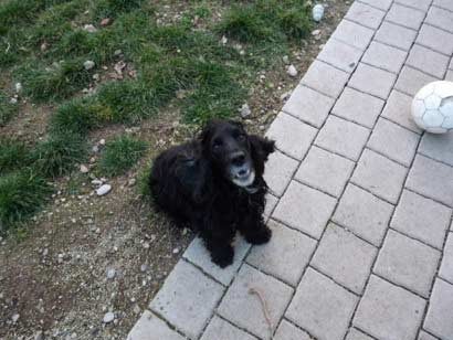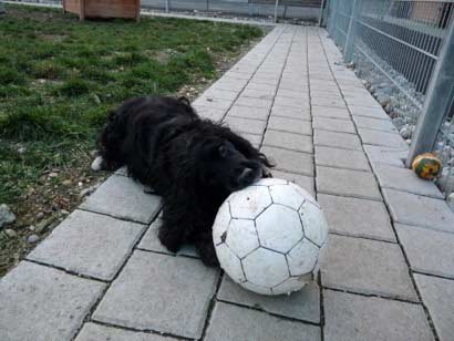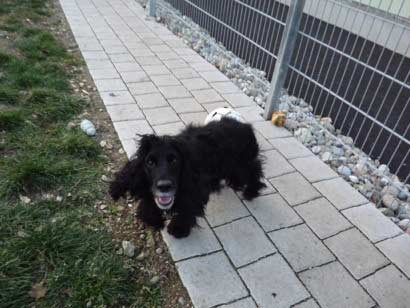 Der ca 5 Jahre alte, schwarze Cocker Spaniel Cook irrte einge Tage im Ort herum, bevor er eingefangen werden konnte. Rassetypisch ist er ein ein sehr anhänglicher Hund, der sich sofort für Ballspiele begeistern ließ und mit seiner lieben und charmanten Art jeden um seine Pfoten wickelt.