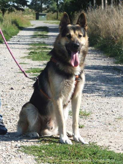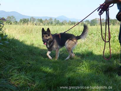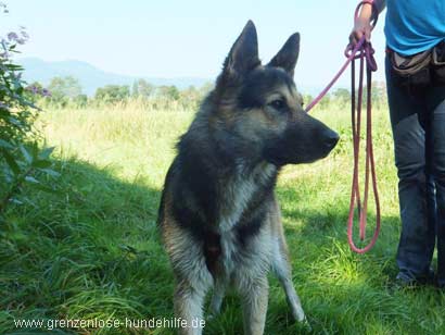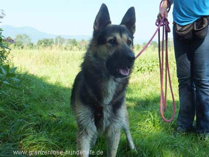 Cosmo durfte in der Vergangenheit nur wenig lernen, denn außer Sitz kennt er nichts, da in ihm aber Schäfiblut fließt, wird er das Hunde-1x1 mit Begeisterung sicherlich ganz schnell umsetzen. |