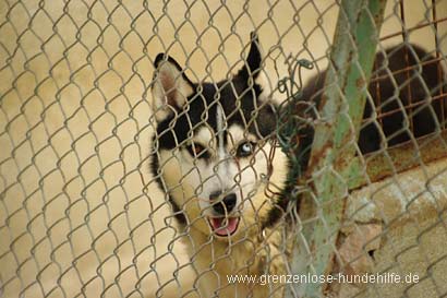 Husky Rüde Crush geboren am 29.12. 2007 wurde zusammen mit zwei weiteren Hunden im Keller gehalten.