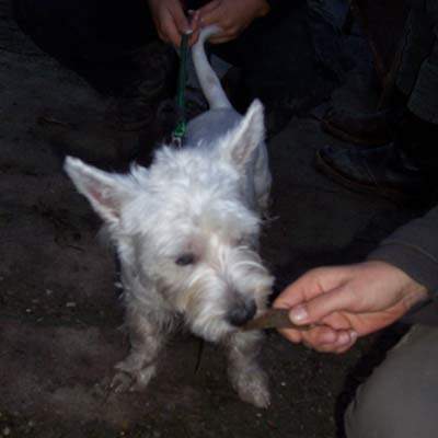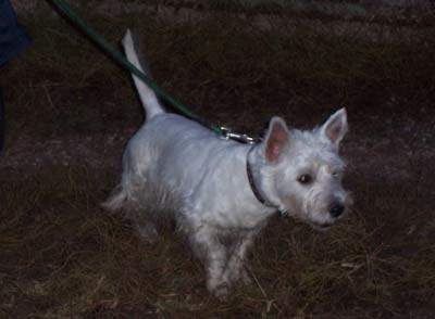 Daisy, geb. 11/09, eine weibliche Westhighlandterrierhündin. Sie wurde abgegeben wegen Allergie des Kindes.