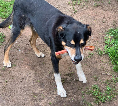Er hat schön zugenommen, doch spürt man, das das Tierheimleben nicht spurlos an ihm vorbei gegangen ist.