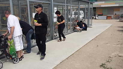 Bei einem Rundgang durchs Tierheim wurden die mitgebrachten Leckerlis an die Heiminsassen verteilt und der ein oder andere war verzaubert vom französischen Katzencharme oder den vielen entzückenden Hunden vor Ort :)