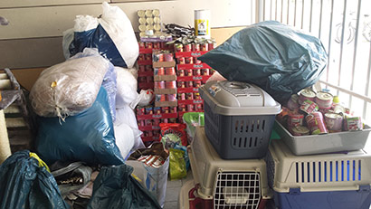 Es wurde Hunde- sowie Katzenfutter gespendet.