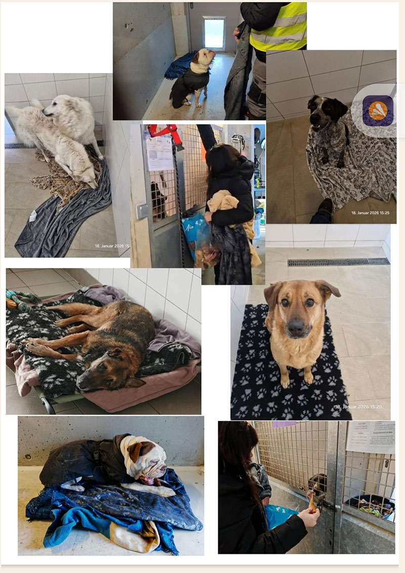 Die Decken sind in den Hundebetten verteilt und die leckeren Geschenke verfüttert.
