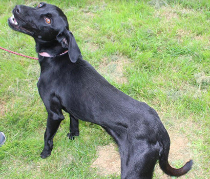 Erist ein entzückender, ganz in Schwarz gekleideter, mittelgroßer, sehr freundlicher Hund.