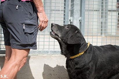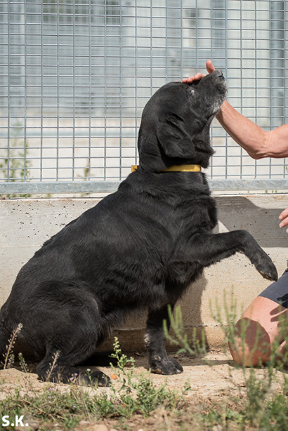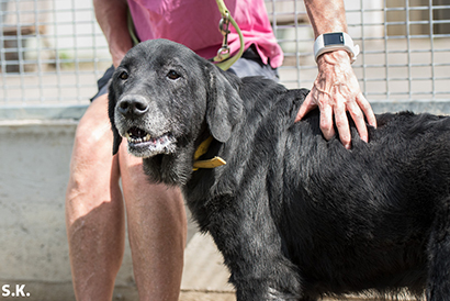 Deejay ist für jede Abwechslung offen und für ihr Alter noch recht fit. Holt man sie auch dem Zwinger, zieht sie etwas an der Leine (sie hat es eilig, aus dem Tierheim zu kommen).