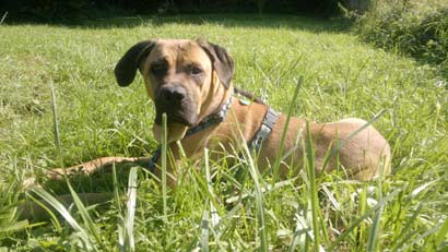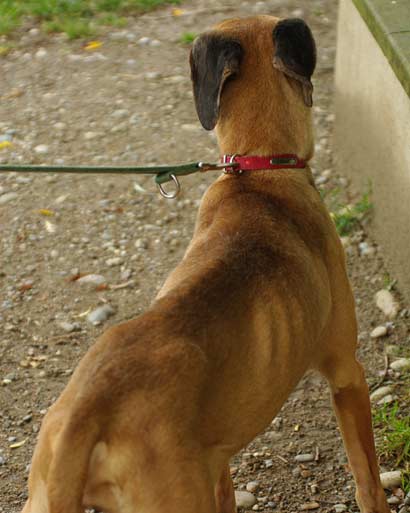 Zwischenzeitlich hat sie zu uns schon so viel Vertrauen aufgebaut, dass wir mit ihr in reizarmen Gegenden ziemlich entspannt spazieren gehen können und sie Interesse an Geräuschen oder Gegenständen zeigt. Gegenüber uns zeigt sie die ersten Freudesanzeichen und fängt auch schon an auf unserem Grundstück (der "böse" Rasenmäher ist okay, wenn man den Rasenmähermann kennt!) ein wenig durch die Gegend zu rennen -was zwar noch ein wenig unbeholfen aussieht, da sie das sicherlich sehr lange nicht gemacht hat- aber sie genießt es sichtlich. Und ganz langsam geht sie auch auf unsere Hunde zu, fängt sogar manchmal an, sie zum spielen aufzufordern, wenn auch noch mit einem Sicherheitsabstand.