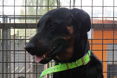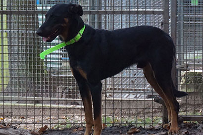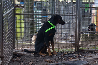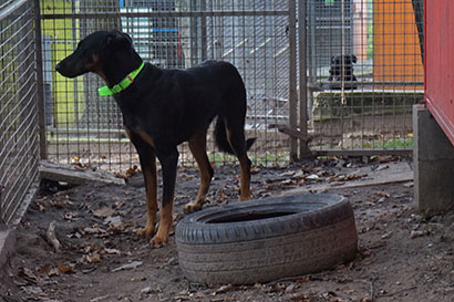 | Der junge Rüde Diabolo hätte so gern mit dem älteren sehr fitten Dalton gespielt. |