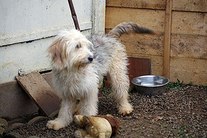 Der quirlige, sehr liebe und verträgliche Mixrüde Dino wurde zusammen mit der Hündin Chary gefunden und im Tierheim abgegeben.