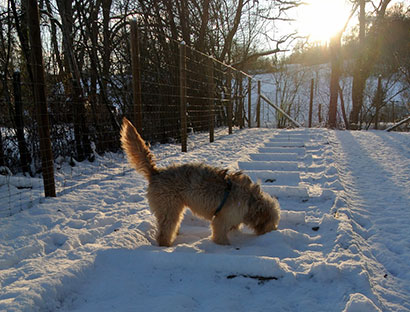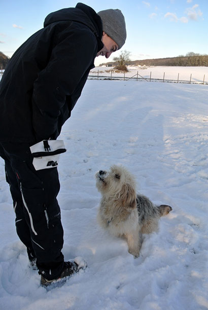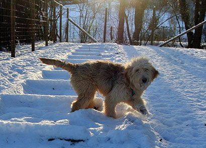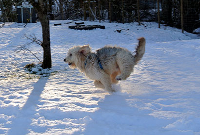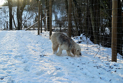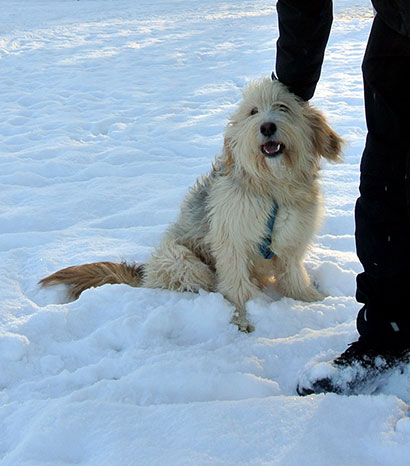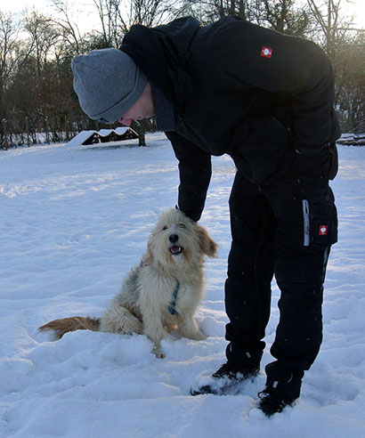 Da das Tierheim für ihn nicht tragbar war haben wir ihn in einer Art Hundepension untergebracht, damit er seine Fröhlichkeit nicht verliert und die unbarmherzige Kälte, die derzeit herrscht, nicht auch noch ertragen muß.