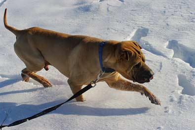 Es war ein schöner Spaziergang, es gab keinerlei Aggressionen gegenüber uns oder unserer Hündin gezeigt. Als wir zurück gingen ins Tierheim, kam uns ein Rotweilerrüde entgegen und der Mann lies seinen Hund an Dinozo schnüffeln und Dinozo reagiert überhaupt nicht! |