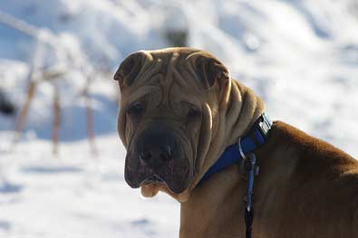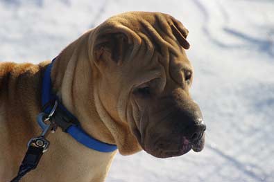 Dinozo ist ein dünner Sharpei- Rüde.