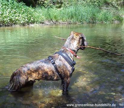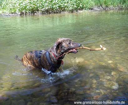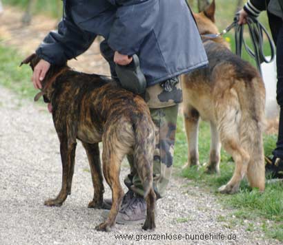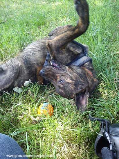 Mit anderen Hunden ist er verträglich, es würde ihm auch guttun wenn er zu einem souveränen Hundekumpel kommen könnte. Denn bei all seiner Energie ist er auch unsicher neuen Dingen gegenüber. Bis jetzt hat ihm wohl noch niemand die Welt so richtig gezeigt. |