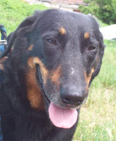 Leider muß ich Ihnen mitteilen, daß Douce am Donnerstag Abend eingeschläfert wurde. Sie hat alle Reserven und was sie noch an Kraft hatte, aufgezehrt, um bis zum Ende munter und freundlich dabeizusein. Ein Schlaganfall am Abend setzte dann das Zeichen für einen schnellen und schmerzfreien Übergang in den Hundehimmel. Nach dem ersten schwierigen Jahr hat sie mich treu und sehr anhänglich über fast 8 Jahre mit Ihrer grobmotorigen und etwas ruppigen Art begleitet, jedoch immer mit freundlichem und gegenüber anderen Tieren oft zurückhaltendem Verhalten. |