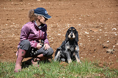 Doug, ein sehr ängstlicher, 18 Monate alter Griffon Bleu de Gascogne wurde gefunden.