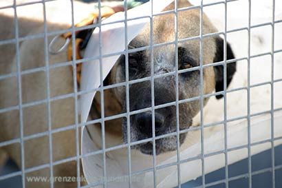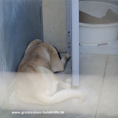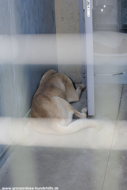 | Douman hat sehr große Mühe mit dem Tierheimstress, traurig verkriecht sich der stattliche Rüde hinter der Tür :(( |