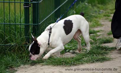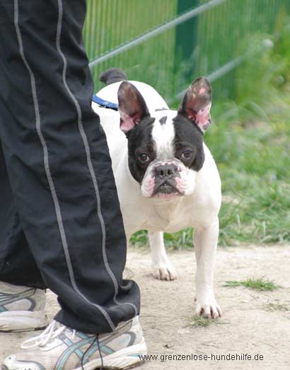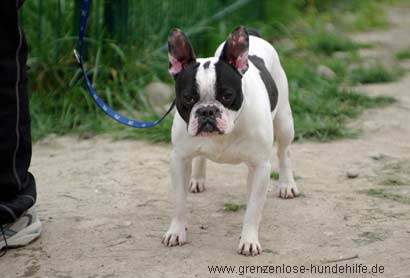 Die freundliche franz. Bulldogge Dubai ist verträglich mit Hunden.