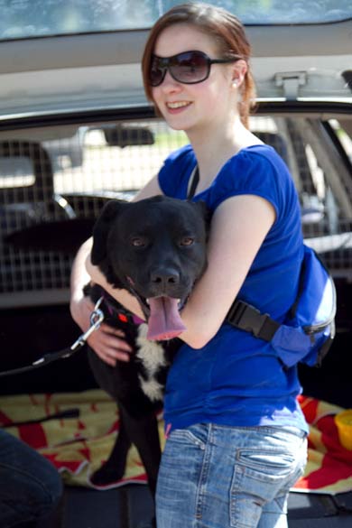 die Post ging es zum Fluss. Duke ist total