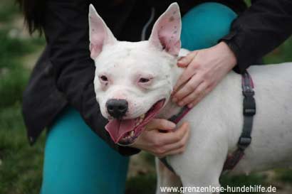 Easy ist eine sehr hübsche Amstaff Hündin mit einer aussergewöhnlichen Färbung. Die Gassigänger beschreiben die Hündin als eine freundliche, anhängliche, Hündin die es sehr liebt, wenn man sich mit Ihr beschäftigt.