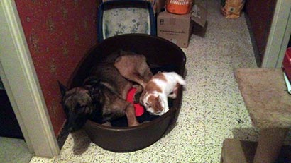 Für uns gibt es zwischen den vielen Bildern die wir gesehen haben mit Katzenbaby, anderen Hunden und dem beschriebenen Verhalten durch die Besitzerin eine enorme Diskrepanz, die wir uns nicht erklären können.