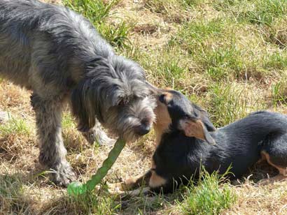 Andere Hunde liebt er heiss und innig, auch wenn er manchmal etwas ungestüm ist.