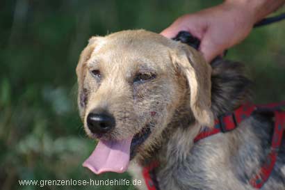 Sein Gesundheitszustand war nicht der allerbeste. Nach einigem hin und her wurde dann endlich in einer Tierklinik eine Hauterkrankung festgestellt die dem armen Rüden schrecklich zu schaffen gemacht hatte.