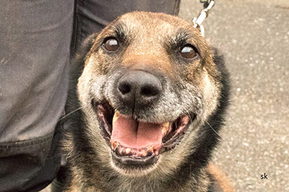 Elga ist ein Schatz, sie läuft sehr gut an der Leine und würde am liebsten jeden Menschen begrüssen.