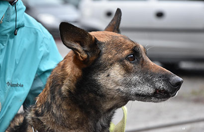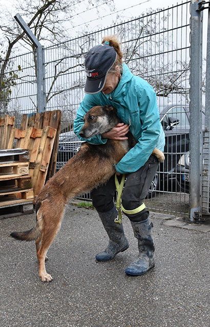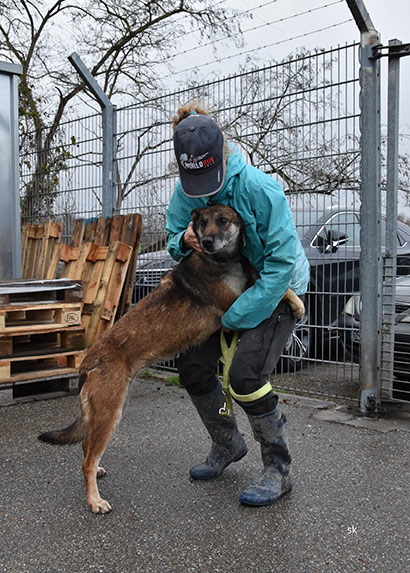 "Als wir Elga aus dem Tierheim holten, kamen alle Tierpflegerinnen hergeeilt und wollten sich von der süssen Hündin verabschieden. Sie hat sich bei allen angeschmiegt bevor wir losgefahren sind.