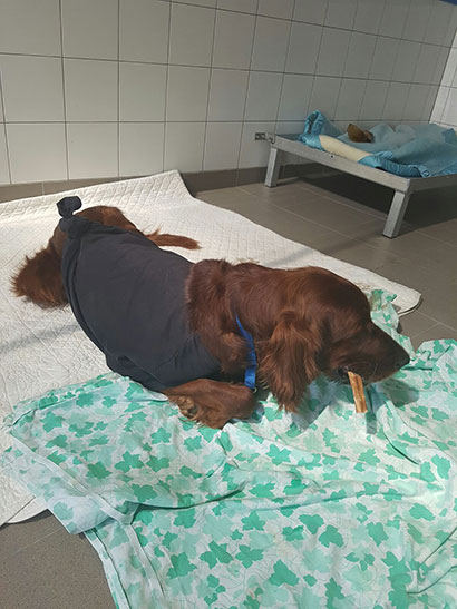 Irish Setter Rüde Eliott erholt sich...