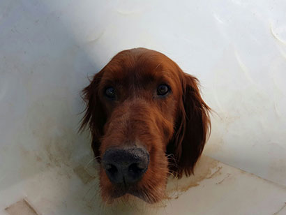 Der Irish Setter Rüde Eliott ist wieder so eine arme Socke.