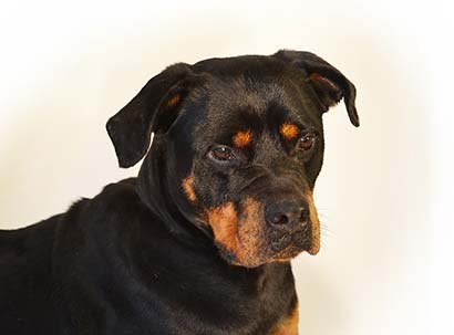 Die liebe Rottihündin Elja wurde eines Morgens angebunden am Tierheim vorgefunden.