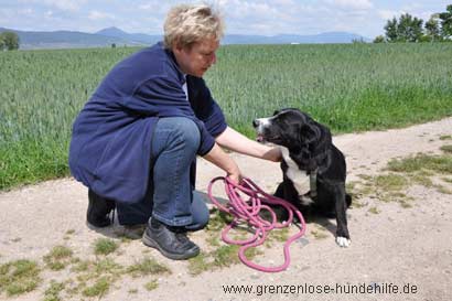 Schenkt man Ella etwas Zeit, lernt man sie als eine feine und ruhige Hündin kennen und man hat den Eindruck, dass sie es gar nicht fassen kann, wenn auch sie ein paar Streicheleinheiten abbekommt.